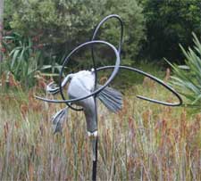 Sculptors at Olsen's, Diversion/Division (bird with cross Wairau River), Olsen's Vineyard, Cromwell.