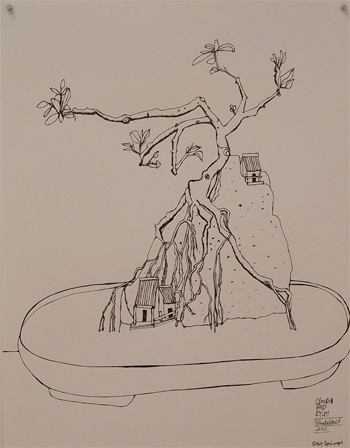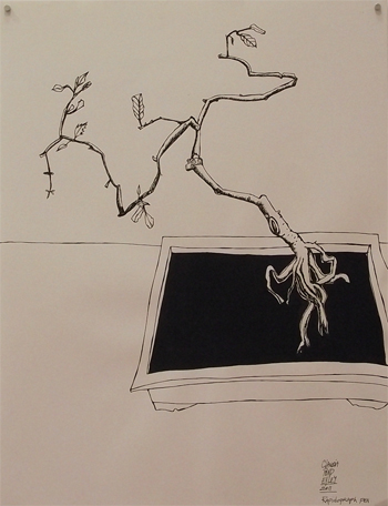 John Lyall invited, fellow artist and friend, Claudia Pond Eyley to exhibit her bonsai drawings in conjunction with his Auckland Festival of Photography exhibition Forest & Bird.