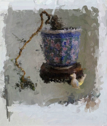 “These works are intrinsically photographically derived works that happen to look like paintings. By the act of turning the photograph into a painting, you are forced to investigate and concentrate on the bonsai.”