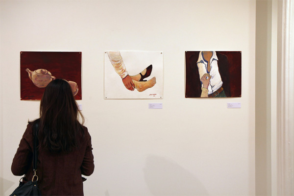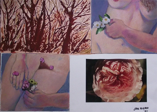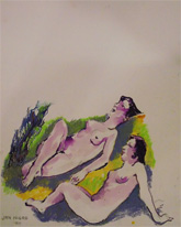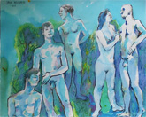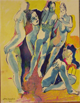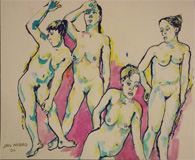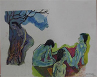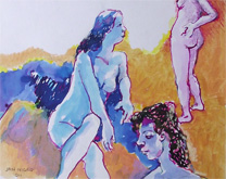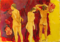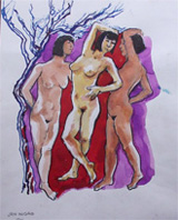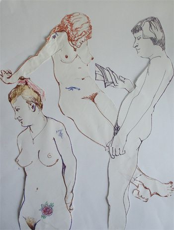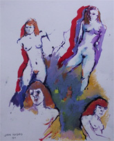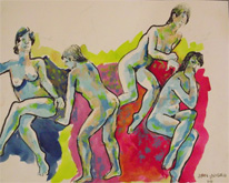 Left to Right: Nudes with pink background, 2011, Mixed media on paper, 40 x 50.5 cm