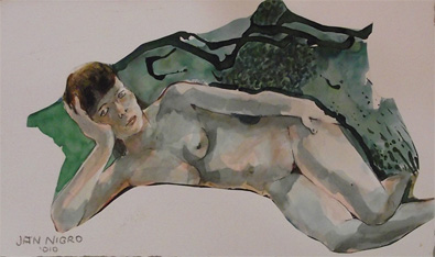 Nude in the Forest, 2011, Watercolour and pen on paper, 29.5 x 51 cm |