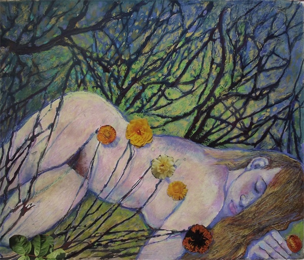Lady Chatterley Dreams of her Lover, 2011, Oil and collage on paper, 48.2 x 71.5 cm |