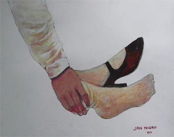 Domestic 11 - Stockings, 2011, Oil and acrylic on paper, 40.5 x 50.8 cm |