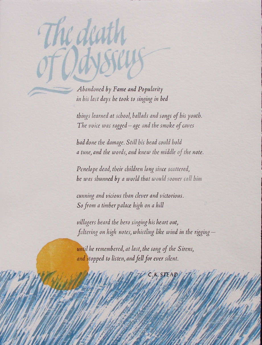 Stead was awarded the C.B.E. in 1986 for services to New Zealand literature. In 2007 he was made a Member of the Order of New Zealand. In 2009 he received the Prime Minister’s Awards for Literary Achievement for Fiction. Several of his novels have been translated into European languages. Acknowledging his outstanding contributions to New Zealand poetry he was named The New Zealand Poet Laureate for 2015-2017.